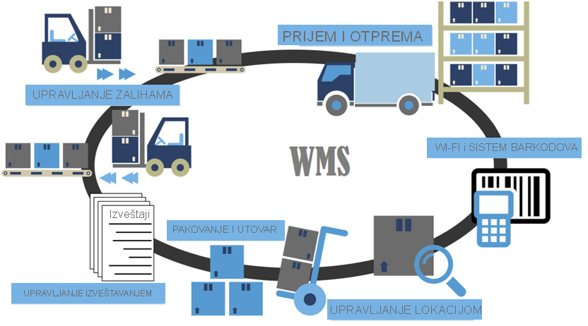 WMS (sistem upravljanja magacinom) - aplikacija za upravljanje veleprodajnim skladištima. Upravljanje radom u veleprodajnim skladištima Kontrola zaliha i rokova Brza isporuka Povećanje efikasnosti dovodi do u rasta poslovanja